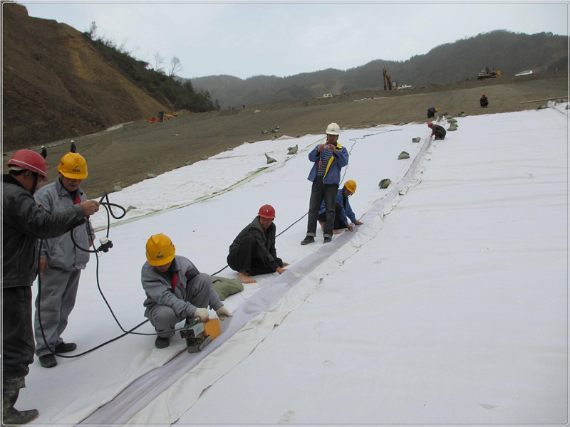 工程所用材料復(fù)合土工膜整體性好,產(chǎn)品規(guī)格化、鋪設(shè)簡便,施工進(jìn)度快、抗拉強(qiáng)度高,適應(yīng)壩身變形、質(zhì)地柔軟、能與土料密切結(jié)合,重量輕,運(yùn)輸方便、抗老化性能較好。