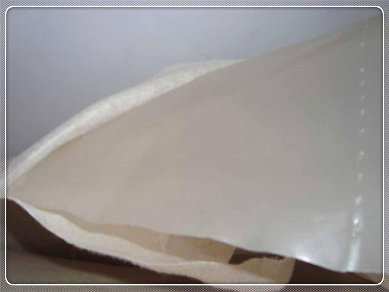 復(fù)合土工膜需要進(jìn)行焊接,其焊接控制參數(shù)以及焊接工藝都必須根據(jù)試驗(yàn)結(jié)果確定,先采用封口機(jī)將下層的土工布縫合,然后再采用熱楔焊機(jī)對夾膜進(jìn)行焊接,焊接的溫度控制在300~350℃,焊機(jī)的行走速度控制在0.8~1.0m/min。焊接的溫度過高會(huì)損壞復(fù)合土工膜,焊機(jī)的溫度過低則不能將土工膜進(jìn)行很好的結(jié)合,這都導(dǎo)致焊縫質(zhì)量不合格;焊機(jī)的行走速度過快、過慢也會(huì)造成土工膜焊接不符合要求。對于夾膜焊縫,通常采用充氣法進(jìn)行檢查,焊縫滿足要求后用封口機(jī)將上層土工布縫合。